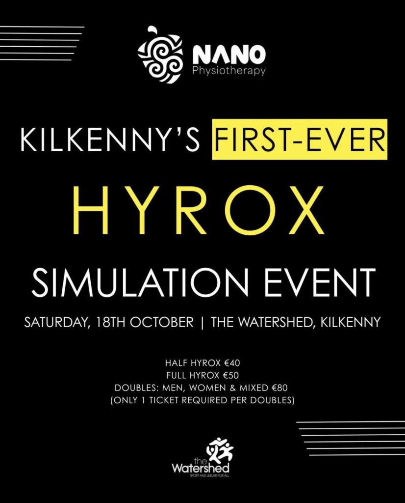 HYROX KILKENNYOfficial HYROX Affiliated Gym HYROX SIM 18/10/2025 BOOK TICKETS HERE powered by Glofox Nano Physiotherapy083 178 655info@nanophysio.ie Nano PhysiotherapyThe WatershedBothernatounish RoadKilkennyR95 HFH1